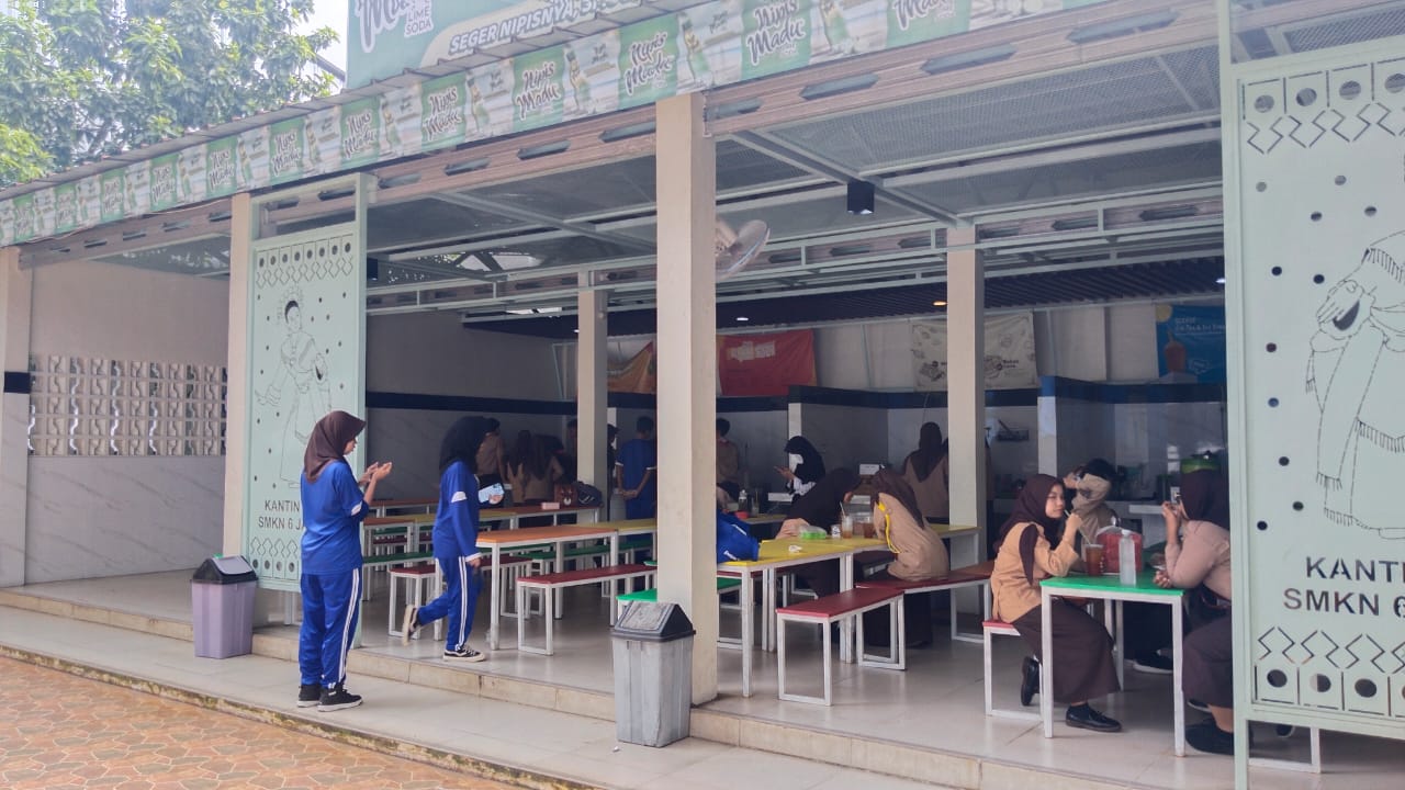 Kantin SMK Negeri 6 Jakarta merupakan salah satu fasilitas penunjang yang memiliki peranan penting dalam mendukung kegiatan belajar mengajar di sekolah. Sebagai tempat utama bagi siswa, guru, maupun tenaga kependidikan untuk beristirahat dan memenuhi kebutuhan makan serta minum, kantin ini dirancang dengan suasana yang bersih, nyaman, dan tertata rapi. Dengan bangunan yang luas dan terbuka, kantin SMK Negeri 6 Jakarta mampu menampung banyak siswa sekaligus, terutama pada jam istirahat. Meja dan bangku yang disediakan cukup banyak, tersusun rapi, serta memiliki desain sederhana dengan sentuhan warna yang bervariasi sehingga memberikan nuansa ceria dan menyegarkan. Hal ini membuat siswa merasa betah untuk duduk bersama, baik untuk sekadar berbincang, menikmati makanan, maupun melepas lelah setelah mengikuti pelajaran. Kebersihan kantin menjadi salah satu hal yang sangat diperhatikan. Tersedia tempat sampah di berbagai sudut sehingga siswa terbiasa menjaga lingkungan kantin tetap bersih dan nyaman. Selain itu, sirkulasi udara yang baik dan pencahayaan yang memadai membuat suasana kantin terasa lebih segar, sehat, serta mendukung aktivitas istirahat yang berkualitas. Dari segi menu, kantin SMK Negeri 6 Jakarta menyediakan beragam pilihan makanan dan minuman dengan harga terjangkau bagi siswa. Aneka makanan ringan hingga makanan berat tersedia untuk memenuhi kebutuhan energi siswa selama beraktivitas di sekolah. Minuman yang disediakan pun bervariasi, mulai dari air mineral hingga minuman segar, sehingga siswa dapat memilih sesuai selera. Lebih dari sekadar tempat makan, kantin ini juga berfungsi sebagai ruang interaksi sosial. Di sinilah para siswa berkumpul, berbagi cerita, dan mempererat tali persahabatan. Suasana akrab dan penuh kekeluargaan tercipta secara alami, menjadikan kantin sebagai salah satu tempat favorit di lingkungan sekolah. Dengan fasilitas yang memadai, pengelolaan yang baik, serta suasana yang mendukung, kantin SMK Negeri 6 Jakarta tidak hanya menjadi sarana pemenuhan kebutuhan konsumsi, tetapi juga sebagai wadah pembentukan karakter siswa melalui kebiasaan hidup sehat, menjaga kebersihan, serta menjalin kebersamaan.